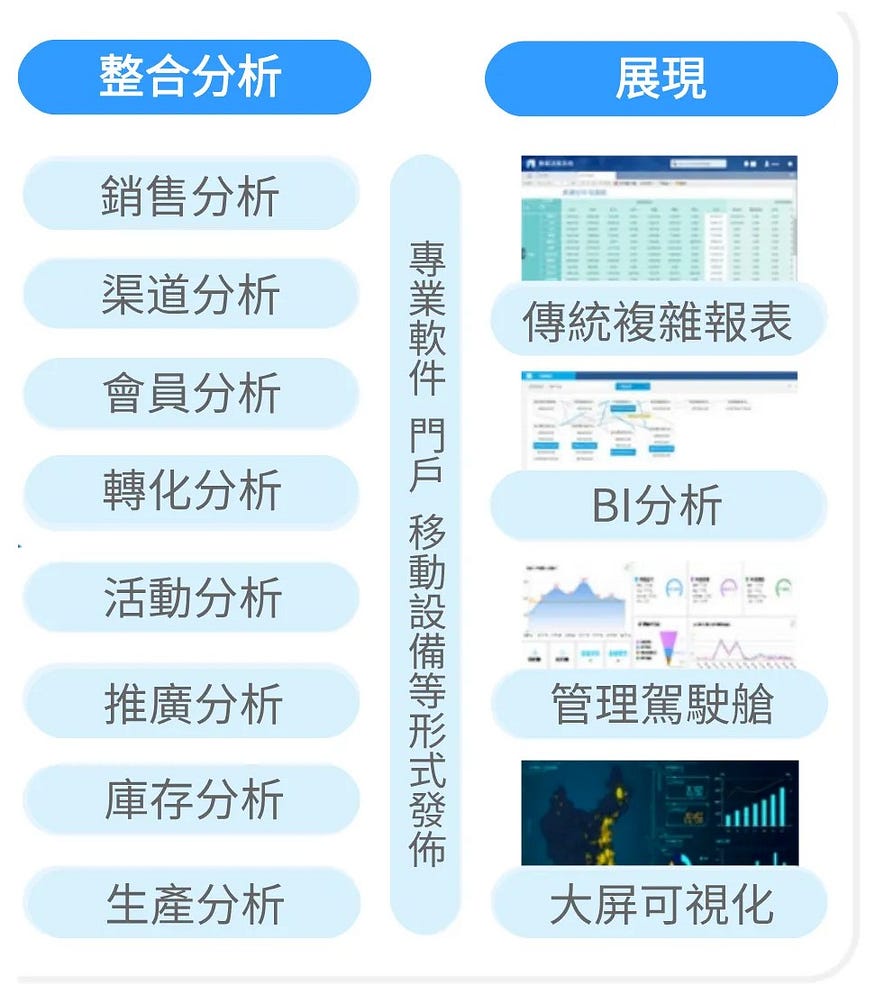 - 戰略二:門店數據整合與報表展現 這一戰略專注於將門店的銷售、庫存、客流等數據進行綜合分析,通過報表展示直觀呈現業務表現,幫助企業深入了解各門店的運營情況,為後續的經營決策提供科學依據。