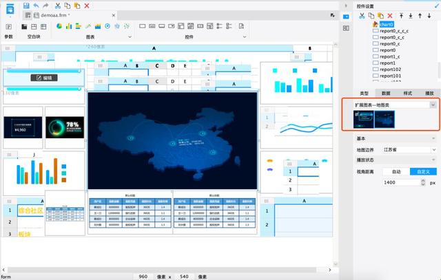 選擇擴展圖表—地圖類,輪播三維組合地圖